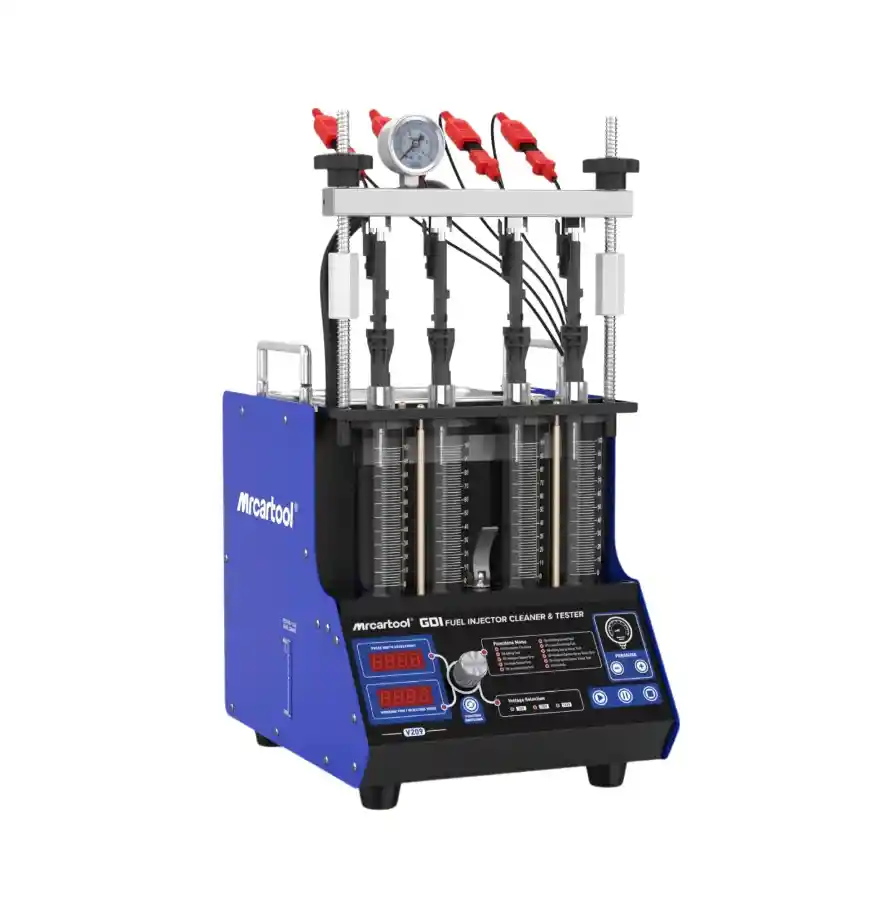 El equipo de limpieza y diagnóstico de inyectores de combustible para automóviles MRCARTOOL V209 es un producto mecatrónico que combina tecnología de limpieza ultrasónica y tecnología de limpieza y detección de control de circuito cerrado de presión de aceite por microcomputadora. Este producto simula diversas condiciones operativas del motor y limpia e inspecciona los inyectores de combustible de varios automóviles y motocicletas. Este equipo es el equipo necesario y preferido para los departamentos de investigación, enseñanza y capacitación de la industria de reparación y mantenimiento de automóviles y motocicletas. Aviso: El líquido de limpieza es un líquido de limpieza para inyectores de automóviles de 3M y el líquido de prueba es alcohol industrial. CARACTERÍSTICAS DEL PRODUCTO: 1. Para varios inyectores de combustible: V209 puede limpiar y probar no solo inyectores estándar sino también inyectores GDL Como Mercedes-Benz, BMW, Audi, Porsche, Ford y otros motores de inyección directa. 2. Líquido de limpieza de recuperación: El líquido de limpieza y el líquido de prueba usados se pueden recuperar fácilmente. 3. Voltaje de trabajo ajustable: Seleccione el voltaje adecuado para realizar ajustes y pruebas precisos en función de diferentes tipos de inyectores de combustible. PRINCIPALES FUNCIONES DE DETECCIÓN: 1. Limpieza de inyectores de gasolina con ultrasonidos. 2. Limpieza de la bujía. Coloque la bujía en el tanque de limpieza, ingrese el líquido limpio y comience a limpiar. 3. Prueba de inyección del inyector en diferentes situaciones, comprobar fugas y bloqueos. 4. Inyector de limpieza sin desmontaje (necesita accesorios adicionales y tarifa adicional, elija usted mismo) 5. Limpieza de la válvula de mariposa sin desmontaje. (Necesita accesorios adicionales y tarifa adicional, elija usted mismo) 6. Limpieza y prueba de inyector de motocicleta, función de prueba solo para inyectores HONDA YAMAHA SUZUKI SANYANG (necesita accesorios adicionales y tarifa adicional, elija usted mismo) 7. Limpiador de inyectores de combustible: limpie los inyectores de combustible sin quitarlos. 8. LIMPIEZA ULTRASÓNICA: Puede realizar una limpieza ultrasónica en uno o varios inyectores simultáneamente, lo que puede eliminar completamente los bloqueos en los accesorios e internos del inyector. Además, probar cuatro inyectores simultáneamente le ahorrará mucho tiempo. 9. PRUEBA DEL INYECTOR DE COMBUSTIBLE: Detección del volumen de inyección de combustible: puede detectar el volumen de inyección de combustible de la boquilla de inyección de combustible en condiciones de trabajo específicas (como al mismo tiempo y la misma cantidad de veces). ESPECIFICACIONES DEL PRODUCTO: Fuente de alimentación: CA 110 V/220 V Frecuencia: 50Hz/60Hz Rango de velocidad: 0~5000r/min Presión del sistema: 0~0.6Mpa Ancho de pulso PWM: 0-20,0 ms Frecuencia de limpieza: 40kHz Potencia de limpieza ultrasónica: 70w Tiempo de trabajo: 0 ~ 30 min Capacidad del tanque de limpieza: 1600 ml Volumen del cilindro: 110 ml Tamaño del producto: 317x243x276mm Peso del producto: 11 kg EL PAQUETE INCLUYE: 1 unidad principal 1 separador de aceite 4 junta 1 Cable de señal de pulso 1 válvula de drenaje de líquido de limpieza 2 pernos de fijación 24 conector adaptador 4 Cable adaptador 3 enchufe 1 anillo de sellado 1 soporte de sellado 1 soporte de limpieza ultrasónico 1 Cable de alimentación