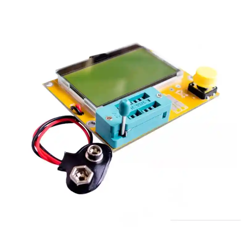 LCR-T4 condensador grafico multi-funcional de la resistencia del probador + + + SCR + diodo + inductancia del tubo del transistor + mos Pantalla LCD LCD 12864, con retroiluminacion, el color de contraluz es generalmente amarillo-verde. Funcion: funcion de deteccion de voltaje de arranque Deteccion automatica de transistores NPN y PNP, MOSFET de canal N y canal P, diodos (incluidos diodos dobles), tiristores, transistores, resistencias y condensadores y otros componentes, Prueba automatica del elemento pin y se muestra en la pantalla LCD 4.Puede detectarse para determinar la tension de polarizacion directa del emisor del transistor del transistor, el diodo de proteccion MOSFET y el factor de amplificacion de la base Medir el voltaje de umbral de puerta y la capacitancia de puerta del MOSFET 1602 lcd display utiliza LCD (12864 LCD con retroiluminacion) Alta velocidad de prueba, prueba de componente valida: 2 segundos (excepto en el condensador mas grande de la medicion de capacitancia grande tambien toma un tiempo largo, el tiempo medido de un minuto es normal) Una operacion de boton, prueba de encendido, obtener una clave. Modo de apagado de consumo de energia: menos de 20 nA de Funcion de apagado automatico para evitar desperdicios innecesarios, ahorro de energia de la bateria, duracion de la bateria mejorada. Rangos de prueba: Inductores, condensadores, diodos, diodo doble, mos, transistor, SCR, el regulador, tubo de LED, ESR, Resistencia, Potenciometro ajustable Resistencia: resolucion de 0.1 ohmios, ohm maximo 50M Condensador: 25pf -100.000 uf Inductores: 0.01mh-20H LA COMPRA INCLUYE: 1 x PROBADOR TESTER MULTICOMPONENTES M328 ** CAJA NO INCLUIDA ** PILAS NO INCLUIDAS