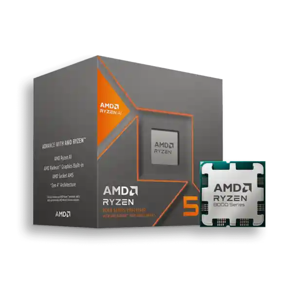 Especificaciones generales: Disponibilidad regional Global Plataforma: Computadora de escritorio Familia de productos: Procesadores AMD Ryzen™ Línea de productos: Procesadores de escritorio AMD Ryzen™ 5 serie 8000 G con gráficos Radeon™ ° de núcleos de CPU: 6 ° de subprocesos: 12 Reloj de aumento máx.: Hasta 5.0GHz Reloj base: 3,5 GHz Caché L2 total: 6MB Caché L3 total: 16MB TDP/TDP predeterminado: 65W TDP configurable de AMD (cTDP): 45-65W Tecnología de procesador para núcleos de CPU: TSMC FinFET de 4 nm Paquete: AM5 máx.: 95ºC Fecha de lanzamiento: 31/1/2024 *Compatible con SO: Windows 11 – edición de 64 bits, Windows 10 edición de 64 bits, RHEL x86 edición de 64·bits, Ubuntu x86 edición de 64·bits, *El soporte del sistema operativo (SO) variará según el fabricante. Conectividad: Versión de PCI Express: PCIe® 4.0 Tipo de memoria: DDR5 Canales de memoria: 2 Velocidad máxima de memoria: 2x1R DDR5-5200, 2x2R DDR5-5200, 4X1R DDR5-3600, 4x2R DDR5-3600 Capacidades gráficas: Modelo de gráficos AMD Radeon™ 740M ° de núcleos de GPU: 4 Frecuencia de gráficos: 2800MHz EXPOTECNOLOGIA 3505945136