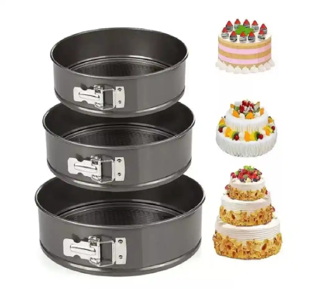 El juego de moldes Springform incluye 3 moldes redondos antiadherentes (4 pulgadas, 7 pulgadas, 9 pulgadas). Molde de resorte de acero al carbono de alta calidad y cierre de liberación rápida, fuerte, duradero, seguro, libre de BPA, la hebilla de resorte inoxidable proporciona una liberación suave y fácil, tus pasteles siempre saldrán perfectamente, puedes trabajar más rápido con mejores resultados. Apto para horno hasta 450 grados Fahrenheit. Funciona perfectamente en horno microondas, horno, olla instantánea y olla a presión, perfecto para todo tipo de pasteles, como tartas, pasteles de queso, postres, pastel de mousse, pastel de helado, etc. Ideal para crear pasteles de una sola capa, doble o incluso triple para todo tipo de celebraciones. El verdadero revestimiento antiadherente de doble capa hace que sea muy fácil quitar los pasteles. El revestimiento es seguro y saludable sin productos químicos agresivos ni sustancias peligrosas. No necesita floración. Nunca más dañe un pastel porque parte de él se pegó a la sartén para tarta de queso. Mucho más fácil de limpiar estas sartenes elásticas. 100% GARANTÍA. Si tienes algún problema al recibir nuestros moldes para pasteles, no dudes en ponerte en contacto con nosotros, estaremos encantados de emitirte un reembolso completo o enviarte un reemplazo. Queremos asegurarnos de que siempre tengas una sonrisa en tu cara al hornear con nuestro juego de moldes elásticos.