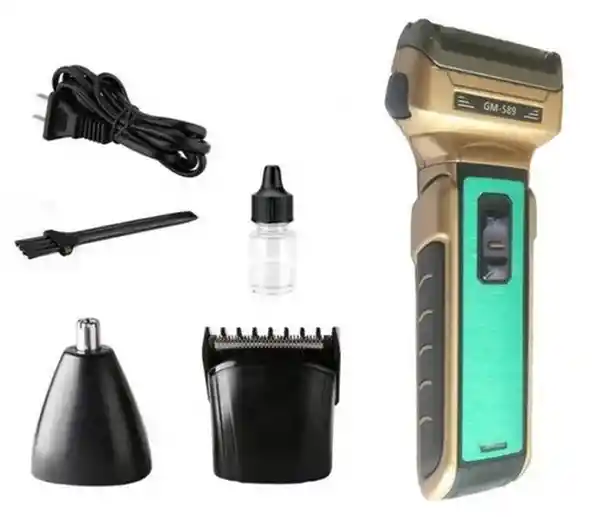 10 Horas de Tiempo de Carga Autonomía 30 mn Corta Pelos de Nariz 2 Cabezas Intercambiables GM-589 Recargable Timmer Afeitado 3 en 1 Juego Para Los Hombres Marca Gemei Modelo: GM-589 Potencia: 3W Recargable: sí Tiempo de Carga: 8 Horas Tiempo de Funcionamiento: Hasta 60 Minutos Accesorios Cabezal Para Afeitar Cabezal Para Patillera Cabezal Para Nariz y Orejas Cepillos de Aseo Cable Cargador Guía Para Arreglar Barba y Bigote