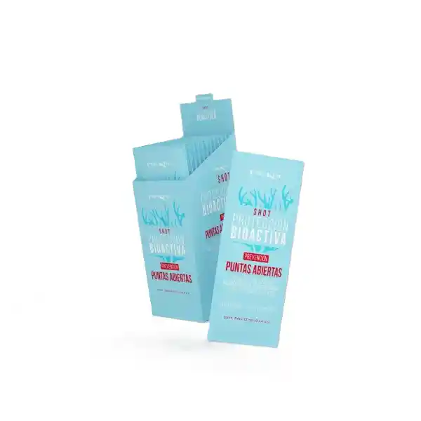 El Shot Capilar Protección Bioactiva Prevención Puntas Abiertas es un multivitamínico con extractos naturales, ideales para prevenir la formación de las puntas abiertas en tu cabello, aportando resistencia a las fibras capilares. Contiene microesferas de colágeno marino que encapsulan las vitaminas A, E y B5 y, junto con el extracto de alga roja de Senegal, reestructuran la superficie de la cutícula, fortaleciendo el cabello para evitar las puntas abiertas.