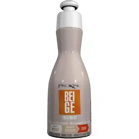 PROKPIL TRATAMIENTO COLOR BEIGE 150 ML : Mantiene el color del cabello teñido, evitando que aparezcan los tonos de desgaste, que se generan por los lavados o exposición al ambiente, al mismo tiempo que mejora la hidratación, el brillo y la suavidad del cabello. Contenido especial de pigmentos y activos que poseen una gran afinidad por la fibra capilar, Es un producto diseñado para proporcionar limpieza al cabello y cuero cabelludo, su carga de pigmentos lo hace diferente y único ya que evitara que aparezcan los indeseados tonos naranjas en tu cabello con tintura permanente o decolorado. Protege el color de tu cabello. MODO DE USO : Lava el cabello con Shampoo, retira con abundante agua, eliminar el exceso de agua con la toalla, aplica la Mascarilla Correctora de Tono de 2 a 10 minutos, de acuerdo al tono mechón a mechón para lograr una aplicación uniforme. la intensidad del color deseada define el tiempo de exposición, retira con abundante agua, eliminar el exceso de agua con la toalla y peine como de costumbre. Repita este procedimiento según la frecuencia de lavado.