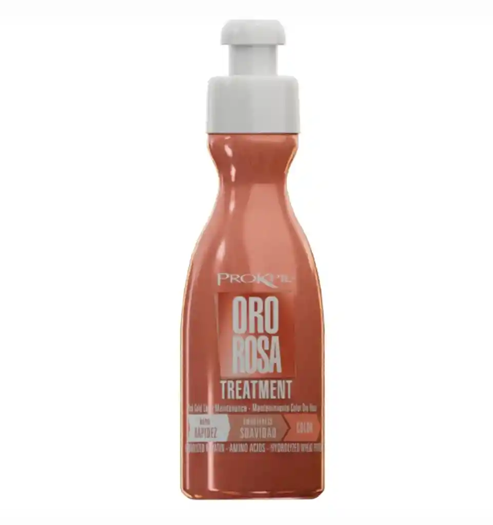 PROKPIL TRATAMIENTO COLOR ORO ROSA 150 ML : Mantiene el color del cabello teñido, evitando que aparezcan los tonos de desgaste, que se generan por los lavados o exposición al ambiente, al mismo tiempo que mejora la hidratación, el brillo y la suavidad del cabello. Contenido especial de pigmentos y activos que poseen una gran afinidad por la fibra capilar, Es un producto diseñado para proporcionar limpieza al cabello y cuero cabelludo, su carga de pigmentos lo hace diferente y único ya que evitara que aparezcan los indeseados tonos naranjas en tu cabello con tintura permanente o decolorado. Protege el color de tu cabello. MODO DE USO : Lava el cabello con Shampoo, retira con abundante agua, eliminar el exceso de agua con la toalla, aplica la Mascarilla Correctora de Tono de 2 a 10 minutos, de acuerdo al tono mechón a mechón para lograr una aplicación uniforme. la intensidad del color deseada define el tiempo de exposición, retira con abundante agua, eliminar el exceso de agua con la toalla y peine como de costumbre. Repita este procedimiento según la frecuencia de lavado.