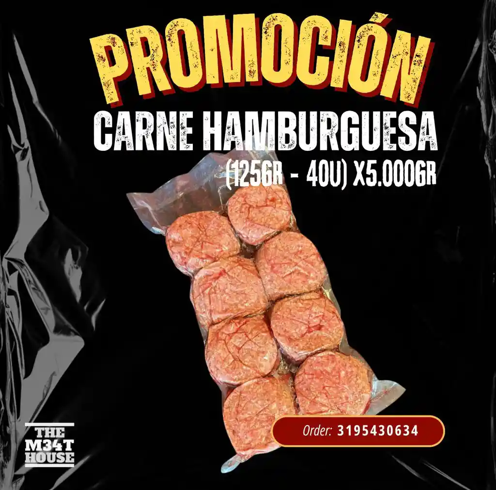 Carne de hamburguesa 40 unidades cada una de 125gr