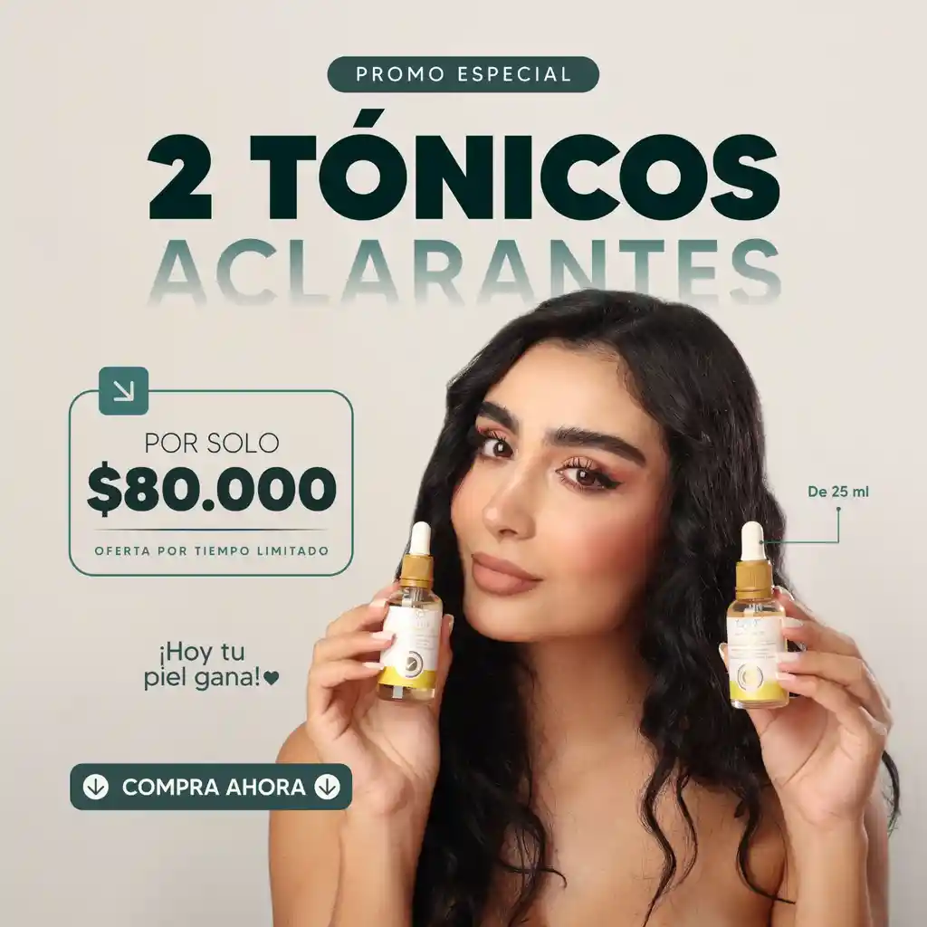 Promo especial por tiempo limitado: Ayudan a detener la formación de espinillas y prevenir su reaparición, mientras disminuyen visiblemente manchas, ojeras y cicatrices. Además, co Incluye 2 tónicos aclarantes de 25 ml, formulados para el cuidado diario de la piel.ntrolan la producción excesiva de grasa, dejando la piel más uniforme, fresca y equilibrada.