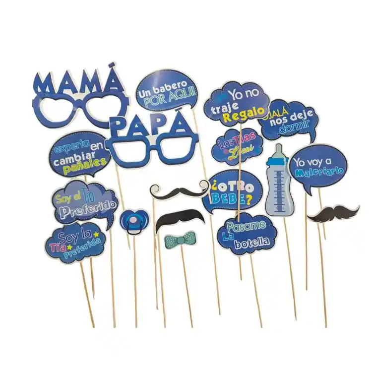 PROPS SELFIE BABY SHOWER NIÑO X 12 12 PIEZAS ACCESORIOS PARA BABY SHOWER ES UN NIÑO DISPONIBLE TAL CUAL LA FOTOGRAFIA