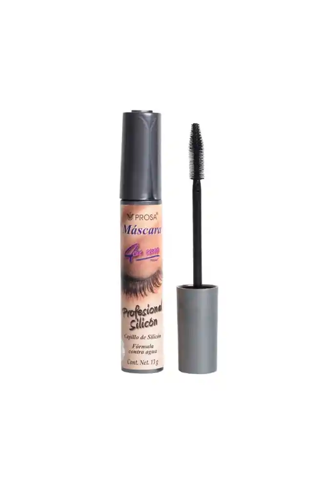 Pestañina Prosa gris oscura profecional con cepillo de silicona 4 en 1 color negro a prueba de agua (13g)