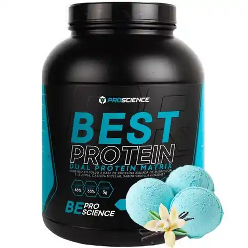 Best Protein de la Marca Proscience es la Integración de la Ciencia en un Suplemento. Combinación Entre la Proteína Aislada de Suero 65% y Proteína de Caseina 35% Con el Objetivo de Una Mejor Biodisponibilidad y Mayor Síntesis de Proteína Para Acelerar el Crecimiento de la Masa Muscular Magra. La Proteína Aislada de Suero es Excelente Por su Valor Biológico Esto se Debe a la Gran Cantidad de Aminoácidos Esenciales Que Son Encontrados Aquí. Debido a Esto su Absorción es Muy Rápida Pero Con la Desventaja Que Rápidamente Deja de Actuar. La Proteína Caseína Por el Contrario Tiene Una Absorción Más Lenta lo Que no Permitiría un Aumento Brusco de la Hormona Insulina También va a Permanecer Más Tiempo en el Cuerpo Sintetizando Más Proteína. El Aminoácido Leucina es un Aminoácido Esencial y es Conocido Como el Aminoácido Estrella Por el Hecho de Que es Capaz de Iniciar la Síntesis de Proteína Estimulando Principalmente el Mtor Responsable en la Célula de Coordinar la Síntesis de Proteína Pero Este es el Que Inicia Pero Lógicamente Son Necesarios Todos Los Aminoácidos Esenciales Para Una Completa Síntesis Proteica. Con la Sinergia de Estos Tres (Proteína de Suero Aislada Caseína y el Aminoácido Leucina) Queremos Aportar Una Mejor Síntesis Proteica Con Mayor Eficiencia y Más Prolongada en el Tiempo lo Cual Consideramos Será Mucho Más Eficiente Para Quien lo Use. Sabor: Vainilla Blue Presentación: 5 Lbs.