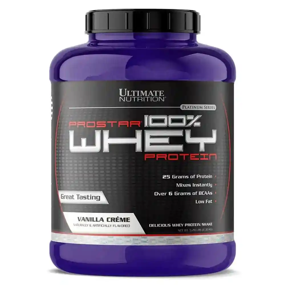 Para satisfacer las necesidades de los atletas ULTIMATE NUTRITION ha diseñado 100% PROSTAR® WHEY para incluir todos los aminoácidos esenciales y no esenciales para construir el músculo después del ejercicio intenso de corta y larga duración. Es una mezcla personalizada de todos los nutrientes, incluyendo factores potenciadores inmunes de proteína de suero por un proceso especializado. Dado que el ejercicio puede tomar un peaje en el sistema inmunológico, el PROSTAR 100% WHEY PROTEIN es el suplemento nutricional de elección para aquellos que llevan un estilo de vida activo. PROSTAR 100% WHEY PROTEIN no es sólo para el atleta sin embargo es compatible con el mantenimiento muscular, la acumulación y la tonificación de los individuos que no son más que «guerreros de fin de semana.» ULTIMATE NUTRITION PROSTAR 100% WHEY PROTEIN es de hecho, la nutrición para los campeones! PROSTAR 100% WHEY PROTEIN contribuye a la protección, recuperación y reconstrucción de las fibras musculares después de la práctica deportiva. Entrega 25 gramos de proteínas por servicio. Solamente 2 gramos de carbohidratos por servicio. Contiene todos los aminoácidos esenciales y no esenciales. Potencia el sistema inmune. Estimula la liberación de hormona del crecimiento hgh. Promueve el crecimiento muscular y la recuperación muscular. Fuente de proteínas de alta calidad libre de grasas. Es isolada por medio de un complejo sistema de bajas temperaturas que utiliza procesos de micro y ultra filtrado, mediante los cuales se obtiene una Proteina Isolada de alta calidad. Esta proteína destaca por sus 2 a 3 gr. de carbohidratos dependiendo del sabor y por sus 3,8 gr. de Glutamina, los que evitan la pérdida de musculatura. 23 grs, de proteína por scoop. Ideal Para Hombres y mujeres deportistas Lograr masa muscular magra sin acumulación de grasas. Mejorar recuperación muscular Complementar dietas de pérdida de peso Complementar dietas bajas en proteína Modo de Consumo Tomar 1 scoop a media mañana y 1 scoop después de la actividad física.