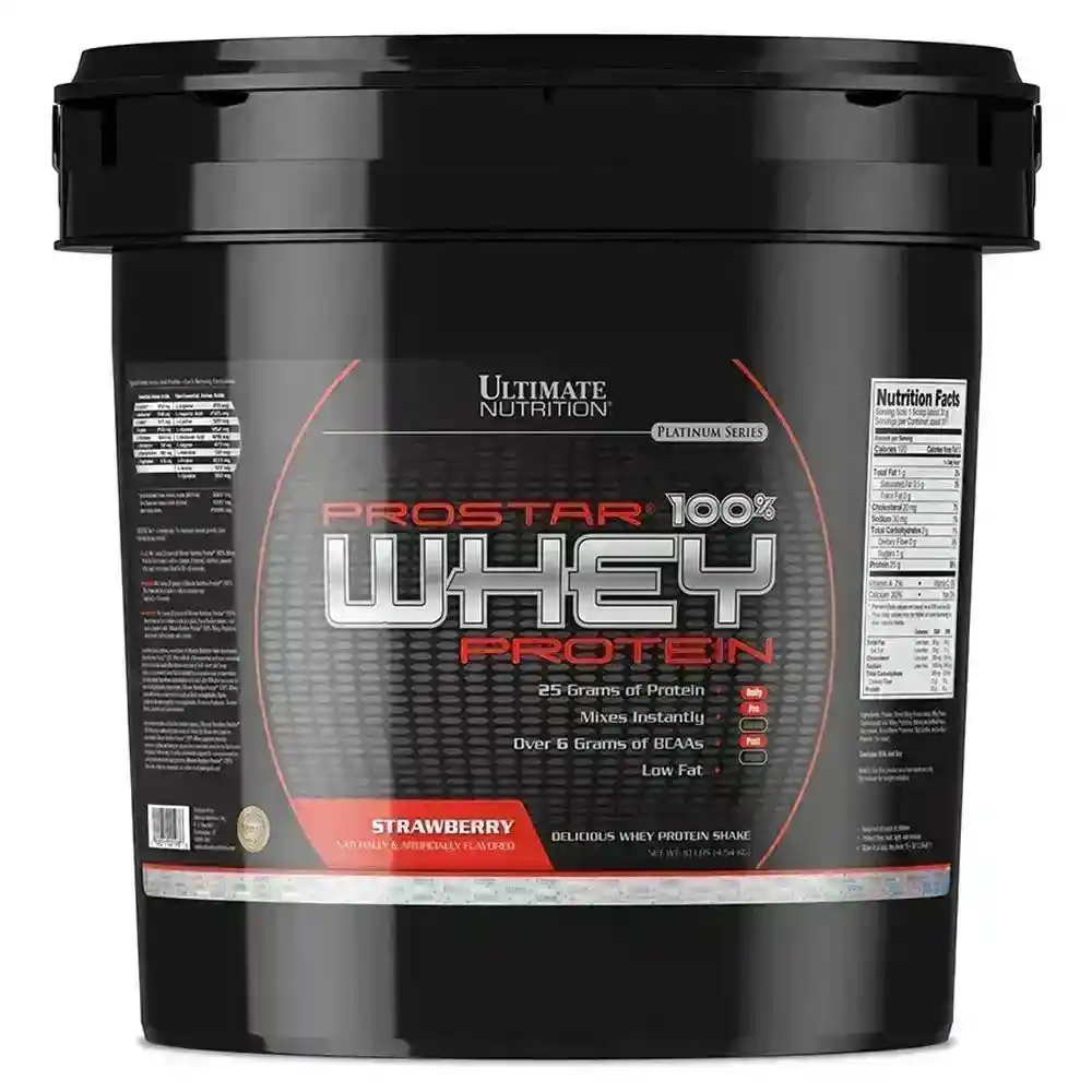 La Prostar Whey Ultimate Nutrition es un suplemento de proteína de suero de alta calidad, diseñado para maximizar tus resultados en el entrenamiento. Este producto utiliza un proceso patentado de micro y ultrafiltración. Este método garantiza que obtengas la proteína más pura y efectiva en cada porción. Cada dosis proporciona 25 gramos de proteína, ideal para quienes buscan aumentar su masa muscular y mejorar su rendimiento físico. Ingredientes: Aislado de proteína de suero, concentrado de proteína de suero, péptidos de suero Proceso de filtración: micro y ultrafiltración patentada Facilidad de mezcla: Instantánea