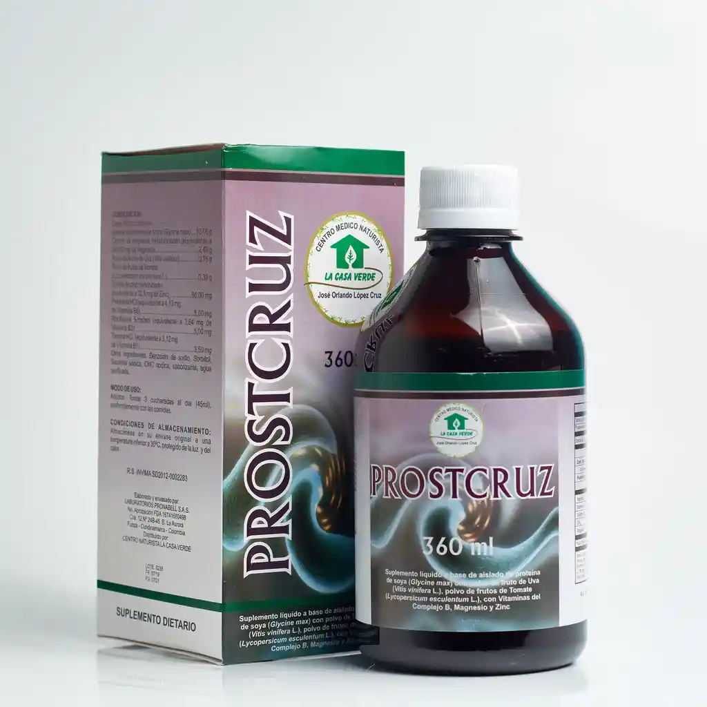 No poder evacuar regularmente la vejiga, sentir ese dolor y molestia, es una situación que desmejora la calidad de vida en cualquier persona, agreguemos que la glándula prostática es en el hombre tan vulnerable de enfermedades inflamatorias y graves como el seno o útero en la mujer, por estas razones, reunimos las bondades antioxidantes y antiinflamatorias del licopeno, presente en el tomate, resveratrol, presente en la uva y el zinc, estos nutrientes protegen el tejido de esta glándula, bloquean el efecto de los radicales libres, evitan la acidificación de la orina y estimulan la eliminación de líquidos. PROSTCRUZ, contiene estos nutrientes. FORMA FARMACÉUTICA : JARABE PRESENTACIÓN COMERCIAL : JARABE x 360ml REGISTRO SANITARIO : SD2012-0002283