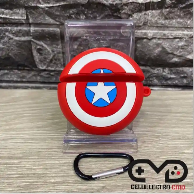 ESTUCHE PARA AIRPODS, CON DISEÑO DE ESCUDO CAPITAN AMERICA EN SILICONA PARA MEJOR PROTECCION.