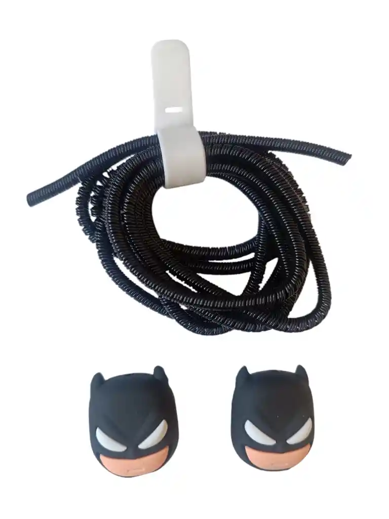 Protector de cable disponible en diseño de Batman Dale estilo a tú cable con diseños diferentes y protegiendo de daños del uso diario y rupturas del cable al mejor estilo. Incluye: 1 - Protector de puntas. 1 - Espiral plástico. 1 - Amarra cables.