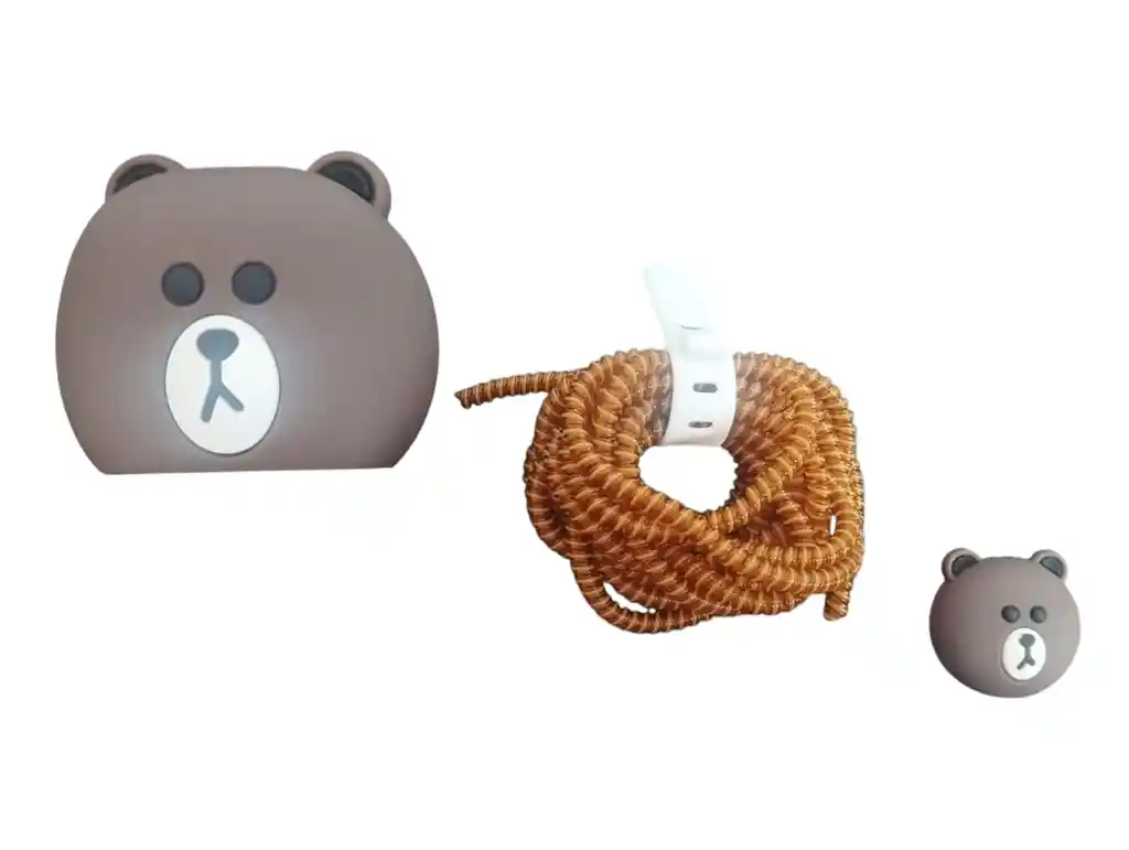 Protector de cargador Completo para iPhone disponible en diseño De Oso Escandaloso Dale estilo a tu cargador 20W con el nuevo kit protector de diseños cubriendo todas sus piezas de rayones y daños del uso diario y rupturas del cable. Incluye: 1 - Protector del adaptador de corriente de iPhone. 1 - Protector de puntas. 1 - Espiral plástico. 1 - Amarra cables.