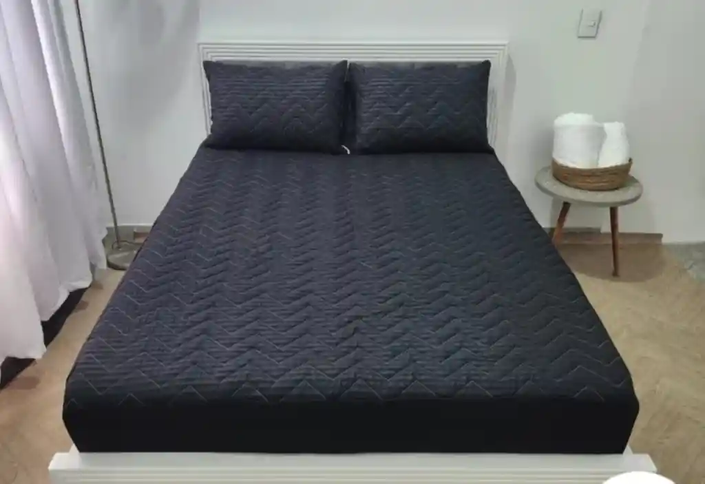 Protector De Colchón 100% Antifluido Cama Doble Color Negro