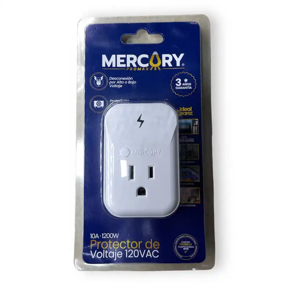IDEAL PARA: Electrodomésticos Aires acondicionados hasta 12.000 btu Consola de Videojuegos. Refrigeradores Congeladores Computadoresa Certificacion RETIE, Tensión de salida permitida: 100-130 Vac. Monitoreo de red eléctrica: 30 segundos. CARACTERISTICAS: Protector de Voltaje 120V/10A Ciclo de espera 180 seg Supresor de trasientes (picos de voltaje). Capacidad de carga máxima 10 Amp. Protección de electrodomésticos. Indicadores de operación. Diseño liviano y fácil de instalar. ALERTA POR FAVOR LEER. Después de conectado el protector al la toma corriente debe de esperar hasta 5 minutos para que se le active a normal (alumbra bombillo verde), siempre y cuando la energía este dentro del rango normal, de lo contrario le seguirá alumbrando el bombillo de espera más otro bombillo sea el de alto o bajo voltaje y por lo tanto no le dejará pasar corriente a su electrodoméstico. Está es la función que cumple este protector de voltaje de proteger su electrodoméstico de sobre tensiones. Recuerde que este es un protector de voltaje no es un Regulador. GARANTÍAS Y DEVOLUCIONES