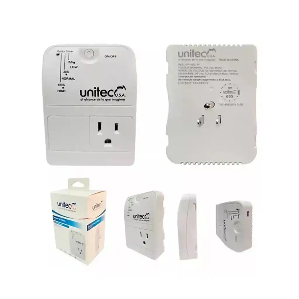 PROTECTOR DE VOLTAJE UNITEC - Color: Blanco - Entrada y Salida: 110 /115 / 120VAC - 15 A - Plug de entrada: nema 5-15p - Plug de salida: nema 5-15r - 3 indicadores LED - Polo a tierra USOS - neveras a 110V - Aires acondicionados a 110V - Lavadoras a 110V - Televisores - Cabinas de sonido - Monitores