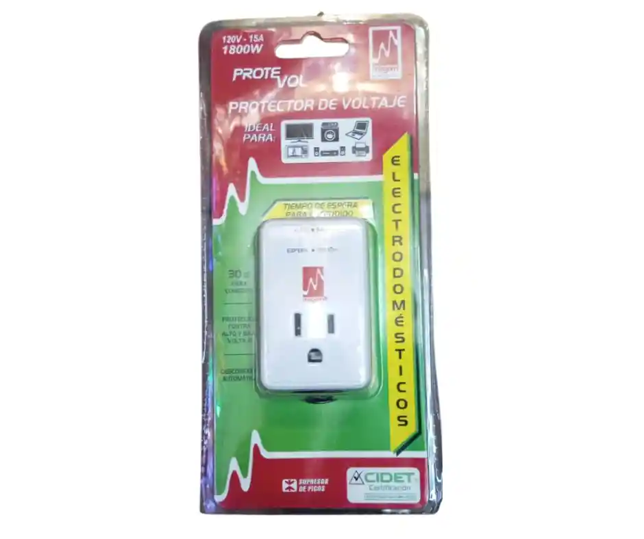 Protector para electrodomesticos contra subidas y bajadas de voltaje con supresor de picos de voltaje ideal para descargas atmosfericas. 1800W indicador frontal con led . temporizador de 30 segundos