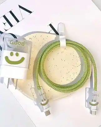CARACTERÍSTICAS: - Compatible con cargador 20W. - Recibes 5 piezas, 1 para proteger el adaptador, 1 para proteger el cable, 2 protectores para entrada y salida de cable, 1 banda para atar el cable. - Material silicona antideslizante. - Diseño 100% resistente a golpes, absorbe el impacto de manera uniforme. - Personaliza tu cargador