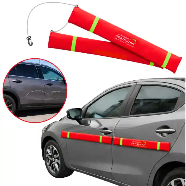 Esta publicación incluye un 1 protector, para un lado del vehículo, con protección total para las 2 puertas. ¿Qué es? El Protector Anti Portazos Magnético es un accesorio diseñado para proteger tu vehículo de golpes, rayones y sumiduras causados por puertas de autos estacionados junto a ti. Este kit ofrece una protección completa para los dos lados del carro, asegurando tus puertas con una instalación rápida y segura. ¿Qué incluye? (2) protectores tamaño ANTI PORTAZO que proporcionan protección total para las 2 puertas. Características: Imanes de alta potencia: Fijan los protectores al carro sin hacer contacto directo con la pintura, evitando rayones o fricción. - Lona impermeable: Resistente a impactos, rasgaduras, sol y agua. Polímero espumado: Internamente relleno con un material de alta densidad que absorbe golpes e impactos. Cable de seguridad: Asegura el protector al interior del vehículo mediante la hebilla del cinturón. Diseño reflectivo: Detalles en cinta reflectiva para mayor seguridad. Fácil de usar: Instalación en menos de 30 segundos. Modo de uso: Coloca los protectores en los lados del carro donde deseas protección. Asegura el cable de seguridad a la hebilla del cinturón. Cierra la puerta para aprisionar el cable y evitar el robo del protector. Revisa que los protectores estén bien posicionados y ajustados. Para retirarlos, abre la puerta y libera el cable del cinturón. Detalles: Peso: 318g. Color: Rojo. Talla: Única Materiales: Lona Impermeable resistente. Polímero espumado. Advertencias: El producto magnético (imanes) funciona en la inmensa mayoría de los autos, únicamente en partes ferrosas del vehículo. No funcionará en superficies de plástico o aleaciones no ferrosas. Se recomienda su uso preferiblemente sin presencia de agua o lluvia, en algunos vehículos se pueden llegar a presenciar manchas leves sobre la superficie de la pintura por humedad excesiva o estancamiento de líquidos. Nuestro producto está específicamente formulado para autos con pintura original, ya que su composición puede no ser compatible con superficies repintadas, lo que podría generar resultados inadecuados o daños en la pintura. Se recomienda su uso con el carro limpio, ya que si llegasen a frotar o mover el producto sobre la superficie podría generar rayones sobre la pintura. El uso indebido del producto podría llegar a generar daños sobre la superficie del carro, estos se constituyen como mal uso o manipulación indebida del producto teniendo en cuenta las recomendaciones de uso del fabricante. Daños o afectaciones por mal uso del producto son atribuidas al usuario y excluye de responsabilidades al fabricante o distribuidor del producto. Garantía: 9 meses (Defectos de fabricación)