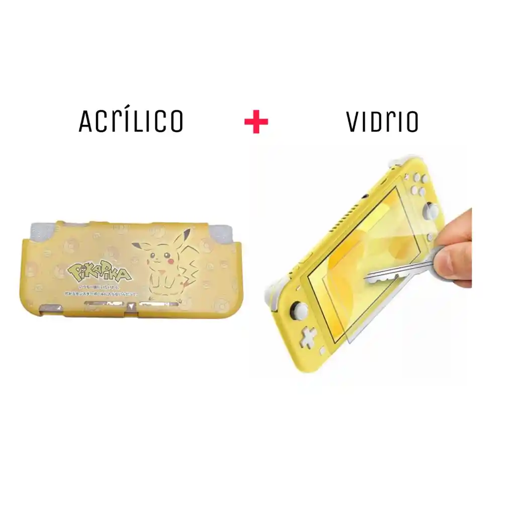 Protector Rígido De Pikachu + Vidrio Templado Compatible Con Switch Lite