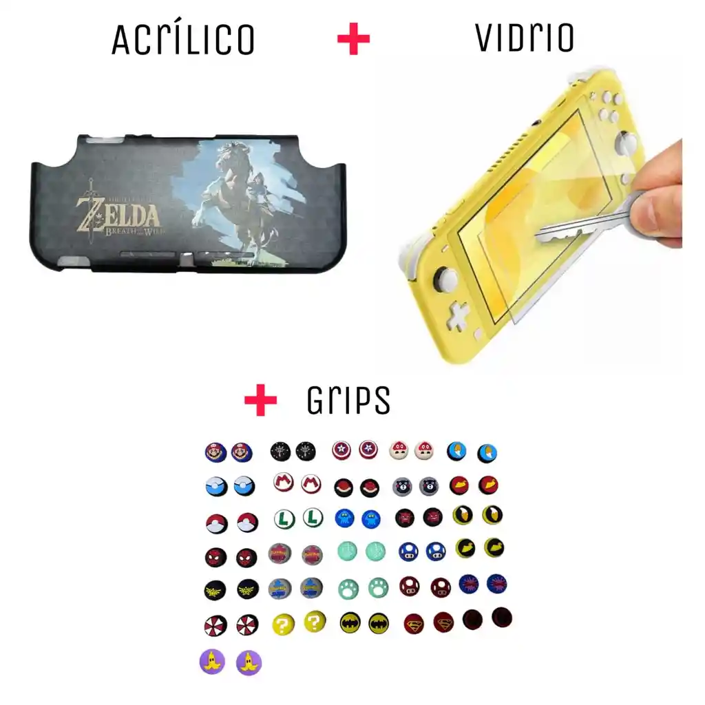 Protector Rigido De Zelda Caballo + Vidrio Protector + 2 Grips Compatible Con Switch Lite