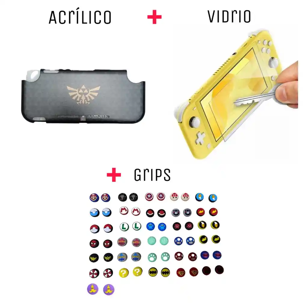 Protector Rigido De Zelda Simbolo + Vidrio Protector + 2 Grips Compatible Con Switch Lite