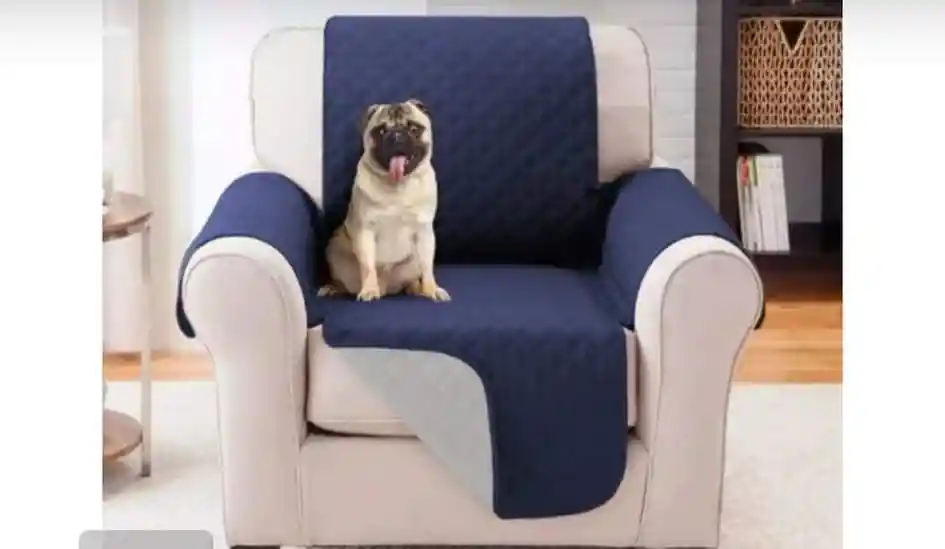 PROTECTOR PARA SOFA 1 PUESTO, MEDIDA 0.5 mts x 1,80 mts y 0,55 mts CADA ALETA. DOBRE FAZ AZUL GRIS.