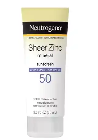 Protector Solar Neutrogena SHEER ZINC MINERAL 50SPF 88ml Protector solar mineral 100% óxido de zinc, por lo que brinda una protección superior de amplio espectro contra los rayos UVA que envejecen la piel y los rayos UVB ardientes. Esta loción protectora solar facial no comedogénica y sin aceite no irrita los ojos, por lo que es ideal para la protección diaria y ayuda a prevenir las quemaduras solares. NO OLVIDES USAR PROTECCIÓN SOLAR MINIMO 2 VECES AL DÍA Recibirás junto con tu producto una rutina especificando como debes aplicarlo, su cantidad, frecuencia, orden correcto y con que activo no