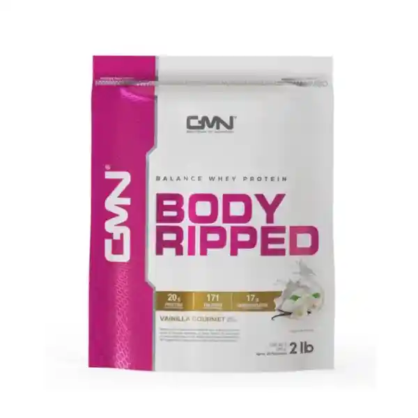 Body Ripped De GMN 2lbs sabor vainilla Es una mezcla en polvo a base de proteína aislada de suero de leche, sin colorantes adicionados, sin azúcar añadido y sin conservantes con avena molida, harina de arroz, almidón de maíz ceroso (amilopectina) y MCT (triglicéridos de cadena media) perfecto para cualquier momento del día. 20 g PROTEÍNA Por porción preparada 171 CALORÍAS Por porción preparada 17 g CARBOHIDRATOS Por porción preparada Cada porción de BODY RIPPED equivale a 1,5 cucharas medidoras (45 g), que se recomienda diluir en 1 vaso con agua (240 ml). Registro INVIMA: RSA-002405-2016 RECETA Agregue 1,5 cucharas medidoras (45 g) de Body Ripped a la mezcla de pancakes, waffles o tortas de preferencia. HELADO Mezcle 1,5 cucharas medidoras (45 g) de Body Ripped en 1 vaso (240 ml) con bebida vegetal de almendras o coco, adicione fruta. Vierta la mezcla en un contenedor y congele. – Proteína aislada de suero, avena molida, harina de arroz instantánea, albúmina pasteurizada en polvo, goma guar (espesante), sabor artificial a vainilla gourmet, triglicéridos de cadena media (MCT), fosfato tricálcico (antiaglutinante). Sabor: Vainilla Gourmet