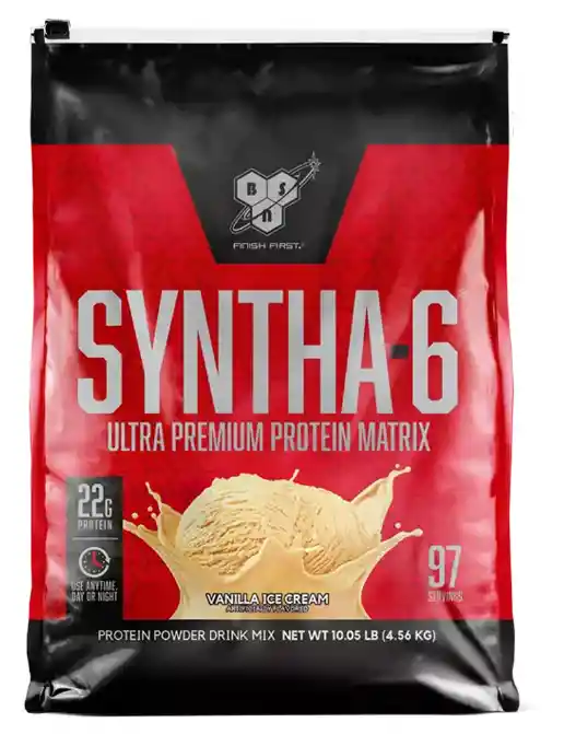 Syntha 6 de BSN es un suplemento único en su categoría de proteínas limpias ya que combina seis tipos de proteínas (tanto de rápida como de lenta absorción) a fin de permitir que tu cuerpo tenga no solo una mejor nutrición sino una mejor recuperación. Syntha 6 te ayuda a acelerar tu recuperación debido al excelente perfil de aminoácidos que tiene y por los péptidos de glutamina que también incluye en su fórmula. Syntha 6 no es una proteína nétamente limpia. Contiene 15g de carbohidratos que te ayudarán a reponer el glucógeno consumido al entrenar. En otras palabras, energía de fácil digestión. Para terminar esta increíble fórmula se agregan MCT (Triglicéridos de cadena media) y sales minerales (magnesio, fósforo y potasio) las cuales perdemos al sudar durante los entrenamientos. Syntha 6 te entregará por servicio: 22g de Proteína 15g de Carbohidratos 10g de aminoácidos 190 calorías Presentación: 10 Lbs Servicios: 94 servicios