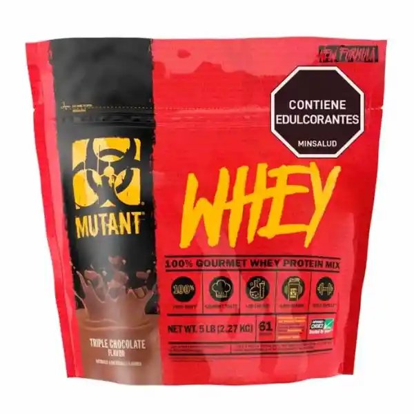 Mutant Whey 5lbs Los ingredientes y la información nutricional pueden variar ligeramente según el sabor. Fórmula de combinación de 4 tipos de proteína de suero para obtener un producto final con un alto contenido en péptidos bioactivos. Cada servicio contiene: 22 gr de Proteína de suero concentrada, proteína de suero aislada, proteína de suero hidrolizada y concentrado de fosfolípidos proteicos. Con enzimas digestivas Fácil de mezclar. 100 % Gourmet. Modo de uso: Disolver un servicio (1 cuchara medidora) en 15,9 onzas de agua. Tamaño de la porción: 36g (61 Servicios aprox) Contenido: Neto 5 LB (2.27 Kg) Sabores: Vainilla ice cream, Triple chocolate y cookie & cream.