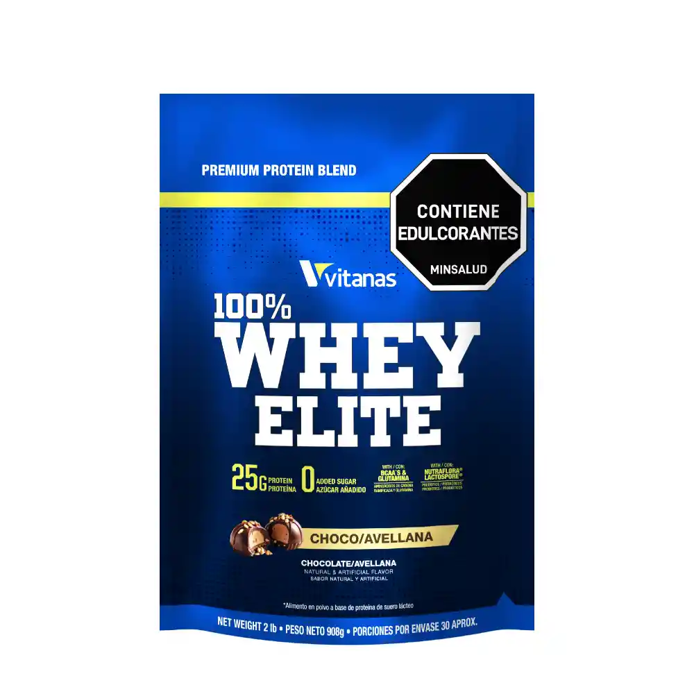 100% WHEY ELITE X 2 LIBRAS 100% WHEY ELITE es una combinación de proteínas del concentrado y aislado de suero lácteo, contiene aminoácidos de cadena ramificada (L-leucina, L-valina, L-isoleucina), glutamina, probióticos, prebióticos y enzima digestiva (Lactasa). Fórmula completa de proteína de suero concentrada y aislada para un máximo beneficio: 25 g de proteína de suero concentrada y aislada por servicio 3 g de carbohidratos y 1 g de grasa total Sin azúcar añadida: BCAA y Glutamina Enriquecido con Nutraflora® (prebióticos) y Lactospore® (probióticos): Favorece la salud digestiva y la absorción de nutrientes. Modo de uso: Mezclar 1 cuchara (30g) de 100% WHEY ELITE en 8oz (240 ml) de agua y agitar hasta obtener una mezcla homogénea. Una vez preparado, consúmase en el menor tiempo posible. Cada envase contiene: 30 g por porción 30 servicios aprox. 2 Libras/ Neto 908g Sabor: Chocoavellana Ingredientes: 100% WHEY ELITE es una combinación de proteínas del concentrado y aislado de suero lácteo, Aporta 25 gr de proteína, 0 azucares añadidos, baja en carbohidratos y grasas. Contiene BCAAs (Aminoácidos de cadena ramificada (L-leucina, L-valina, L-isoleucina), glutamina, probióticos, prebióticos y enzima digestiva (Lactasa). Método de conservación: Almacenar en su empaque original a temperatura inferior a 30°C y humedad relativa inferior a 75%. No introducir elementos húmedos. Consumir en el menor tiempo posible después de abrir. ADVERTENCIA: Este producto no pretende diagnosticar, tratar, curar, o prevenir enfermedades. Este producto es un alimento y no debe ser usado como sustituto de una dieta equilibrada. Reg. San. INVIMA No. RSA-0030493-2024