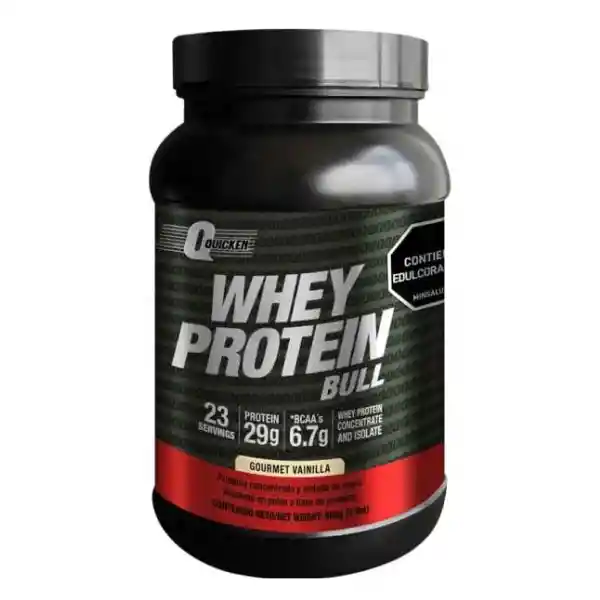 29 Gramos de proteína Proteina concentrada 6.7 Gramos de Bcaa´s por servicio Sabores Disponibles: Vainilla, un clásico que combina delicioso sabor con funcionalidad. Empaque Seguro: Envase plástico con cierre hermético y foil interno para garantizar frescura y calidad. Contenido Neto: 454 g (1 lb), equivalente a 11 porciones de 40 g cada una, ideal para tu rutina semanal. Modo de Preparación Preparar tu whey proteína Bull es rápido y sencillo. Mezcla una porción de 40 g (una cuchara dosificadora) con 150-200 ml de agua fría, jugo o leche descremada. Agita vigorosamente hasta obtener un batido cremoso y disfruta de su sabor y beneficios. Para obtener los mejores resultados, consume dos porciones diarias, preferiblemente una de ellas justo después de entrenar.