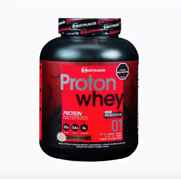 Proton Whey Protein es una mezcla entre isolate, whey y probióticos, es baja en grasa, azúcares y carbohidratos además de alto contenido de proteína, en un delicioso sabor Summer Vanilla. Atrévete a probarla. Ingredientes: 75% proteína concentrada y 25% proteína aislada, sabor summer vainilla, antiespumante, sucralosa y probióticos (lactobacillus coagulans) Modo de uso de Proton Whey: Adicionar 1 Scoop (31 grs) de la mezcla en polvo a un vaso o shaker con 250 ml de agua. Como suplemento, entre comidas principales y/o después de actividad física.