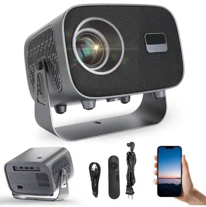 Proyector de muy buena calidad a 110v de 12000 lux y una pantalla que puedes expandir hasta 200" compatible para proyectar la imagen de tu celular a el