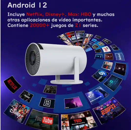 potente proyector de videojuegos - Doble banda Wifi6+BT5.0: Proyector HD inteligente, conexión inalámbrica - La resolución nativa del mini proyector es de 1280 x 720 - Proyección giratoria de 180° y video HD 4K Equipado con WiFi 2.4/5G avanzado y Bluetooth, el proyector de consola retro NEVERYOUYU garantiza una transmisión estable у un emparejamiento sin esfuerzo con todos sus dispositivos. Ya sea que esté reflejando su teléfono o sincronizando con altavoces Bluetooth, este proyector de consola de juegos retro ofrece una experiencia suave y sin complicaciones para jugadores y amantes del cine por igual. Disfruta de una calidad de imagen excepcional con este proyector de juegos retro x10 plus, con resolución nativa de 720P y decodificación 4K. Diseñado para el entretenimiento ininterrumpido, el proyector de juegos 2 en 1 HY300 MAX funciona a un ultra silencioso 25 dB. Ya sea que estés inmerso en juegos retro o disfrutando de un éxito de taquilla en su pantalla gigante, su funcionamiento de bajo ruido y su eficiente sistema de enfriamiento garantizan una experiencia pacífica y de alto rendimiento.