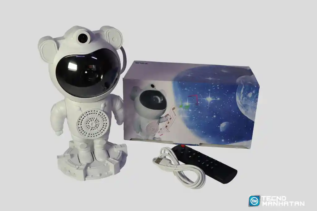 Convierte cualquier habitación en un viaje espacial con este innovador proyector con diseño de Oso Astronauta. No solo es una pieza decorativa única, sino una experiencia sensorial completa que combina efectos visuales de nebulosas y estrellas con la posibilidad de reproducir tu música favorita. Efectos de Proyección Inmersiva: Lente de alta definición que proyecta nebulosas coloridas y estrellas parpadeantes con múltiples modos de combinación para un ambiente relajante. Altavoz Bluetooth Integrado: Conecta tu smartphone para reproducir música, sonidos ambientales o cuentos antes de dormir directamente desde el cuerpo del astronauta. Diseño Creativo y Ajustable: La cabeza del oso tiene un sistema de rotación que permite dirigir la proyección hacia el techo, las paredes o cualquier ángulo deseado. Control Total a Distancia: Incluye un control remoto para ajustar el brillo, la velocidad de movimiento de las luces, los colores y las funciones de reproducción musical sin levantarte. Alimentación USB: Funciona mediante cable USB, lo que lo hace compatible con adaptadores de corriente, laptops o Power Banks, ideal para usarlo en cualquier lugar.