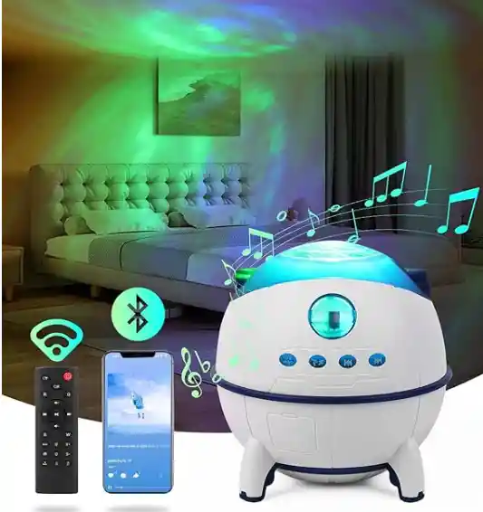 2 temas de proyección: experimenta las maravillas de un cielo estrellado disperso y una galaxia de ensueño en interiores con dos películas de proyección incluidas. Emociona a los niños e inspira su comprensión del mundo con múltiples patrones. 8 sonidos relajantes: crea un ambiente relajado con 8 canciones de cuna relajantes, incluyendo océano, canto de pájaro y mucho más. Este no es solo un proyector creativo de estrellas románticas, también es una luz nocturna ideal para niños. Altavoz Bluetooth: consigue tu ritmo con el altavoz de música Bluetooth integrado. Sincroniza tu música favorita para una relajación sin igual y para bailar toda la noche bajo las estrellas.