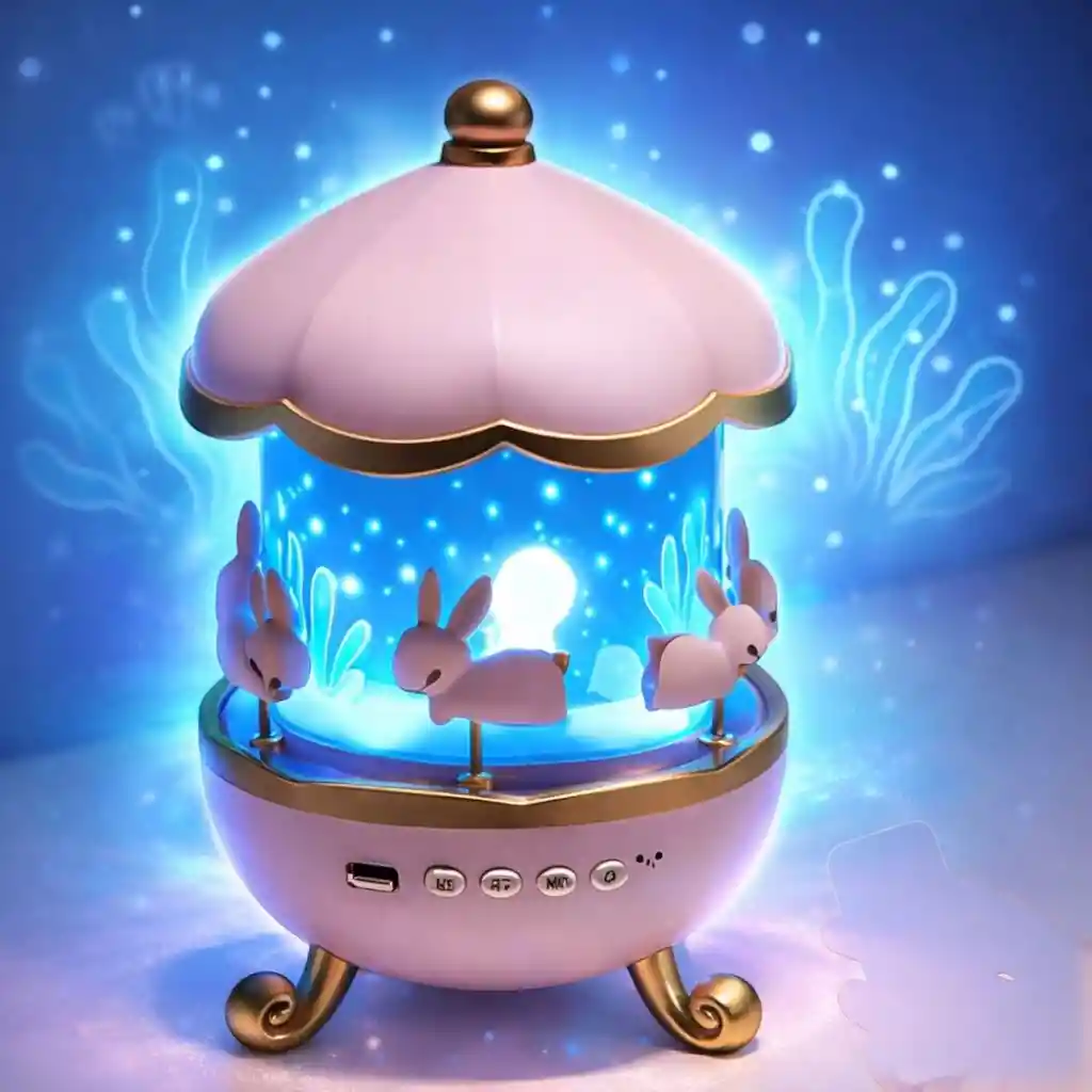 Luz nocturna de carrusel musical con conejitos giratorios, proyector de estrellas, luz nocturna Bunnie proyección y sonidos suaves, color rosa.