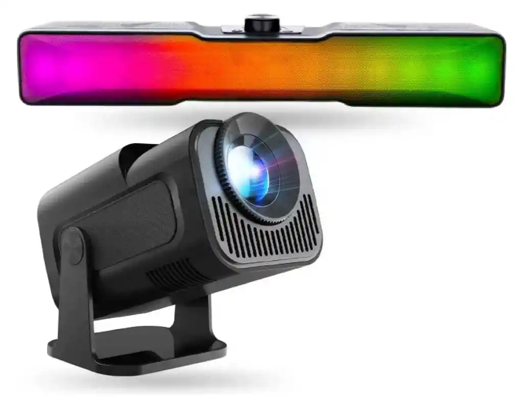 Cansado de ver tus series favoritas en la pantalla pequeña del celular o en un televisor aburrido? Es hora de llevar la experiencia de la pantalla grande a la comodidad de tu cama o sofá. Te presentamos el Dúo Dinámico del Entretenimiento: El Proyector inteligente HY-320 de última generación junto a la impactante Barra de Sonido KTS-1968. No solo estás comprando tecnología, estás comprando noches de cine inolvidables, domingos de fútbol épicos y sesiones de gaming inmersivas. ¿Por qué este combo es para ti? Visión Perfecta sin Esfuerzo: Olvida las configuraciones complicadas. El proyector HY-320 cuenta con enfoque automático y corrección trapezoidal inteligente. Solo apunta a la pared (¡o al techo!) y disfruta de una imagen nítida de hasta 100 pulgadas. Versatilidad Total: Su diseño giratorio de 180° te permite proyectar donde quieras. ¿Quieres ver una película acostado mirando al techo? Con este proyector es posible. Sonido que se Siente: La barra de sonido KTS-1968 no solo suena increíble con su sistema de doble canal; también decora tu espacio. Sus luces LED RGB crean una atmósfera tipo "Home Theater" que cambia por completo el ambiente. Libertad Inalámbrica: Conéctalo todo vía Bluetooth. Además, la barra de sonido es portátil con hasta 5 horas de autonomía, ideal para llevar la fiesta a cualquier lugar de la casa sin depender de cables.