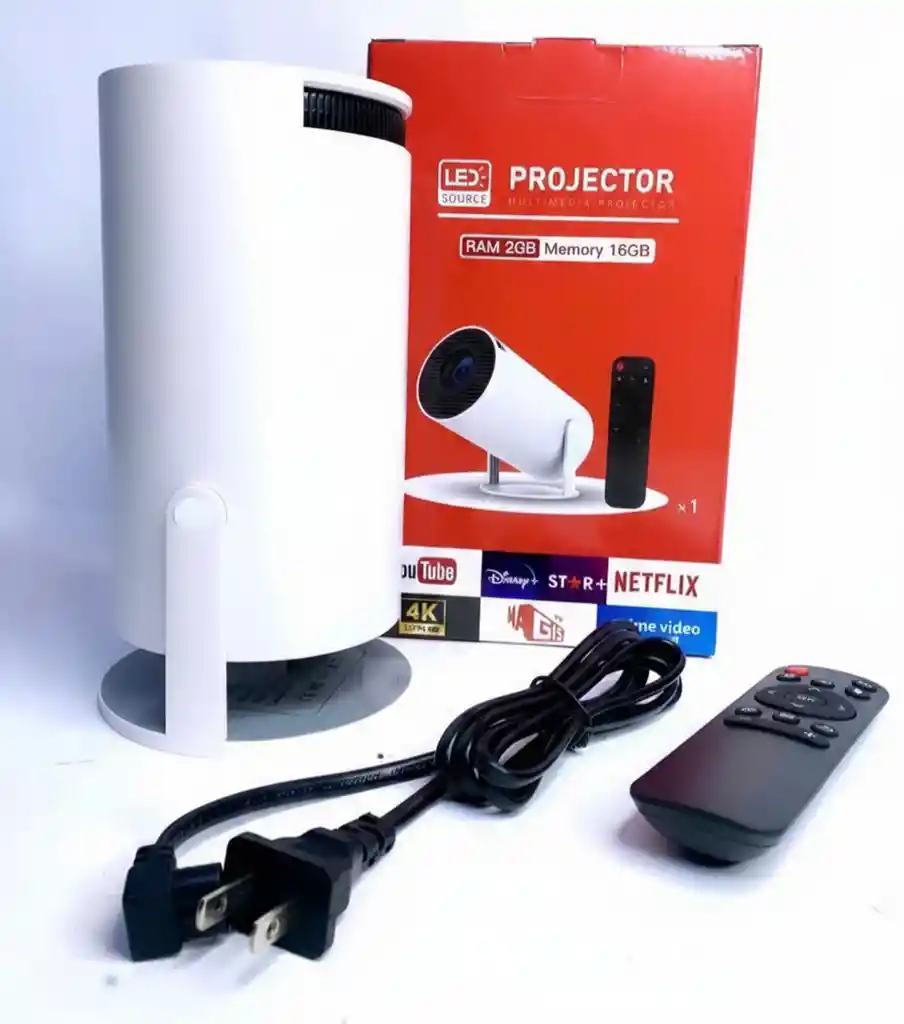 Sus características y especificaciones clave incluyen: Resolución y Calidad de Imagen: Resolución nativa de 1280 x 720p (HD). Compatible con resoluciones de hasta 4K Ultra HD. Brillo de hasta 600 lúmenes o 8000 lúmenes, dependiendo de la versión. Relación de contraste de 2000:1 o 12000:1, lo que proporciona imágenes nítidas y detalladas. Tecnología de iluminación LED con una vida útil de la fuente de luz de hasta 50,000 o 100,000 horas. Conectividad: Conectividad Wi-Fi 6 de doble banda (2.4G/5G) y Bluetooth 5.0 para una transmisión fluida. Puertos de interfaz de hardware: HDMI, USB y salida de audio de 3.5 mm. Diseño y Funcionalidad: Diseño portátil y ligero. Diseño giratorio de 180° que permite proyectar en paredes, techos o suelos. Corrección trapezoidal automática e inteligente para ajustar la imagen fácilmente. Tamaño de proyección máximo de hasta 130 o 200 pulgadas. Hardware: RAM de 2GB y memoria interna de 16GB. Altavoz Hi-Fi incorporado de 5W.