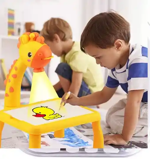 PROYECTOR INFANTIL PARA DIBUJAR DE JIRAFA, CONTIENE 12 MARCADORES, 3 PROYECTORES, 1 BORRADOR, UNA CARTILLA DE DIBUJO
