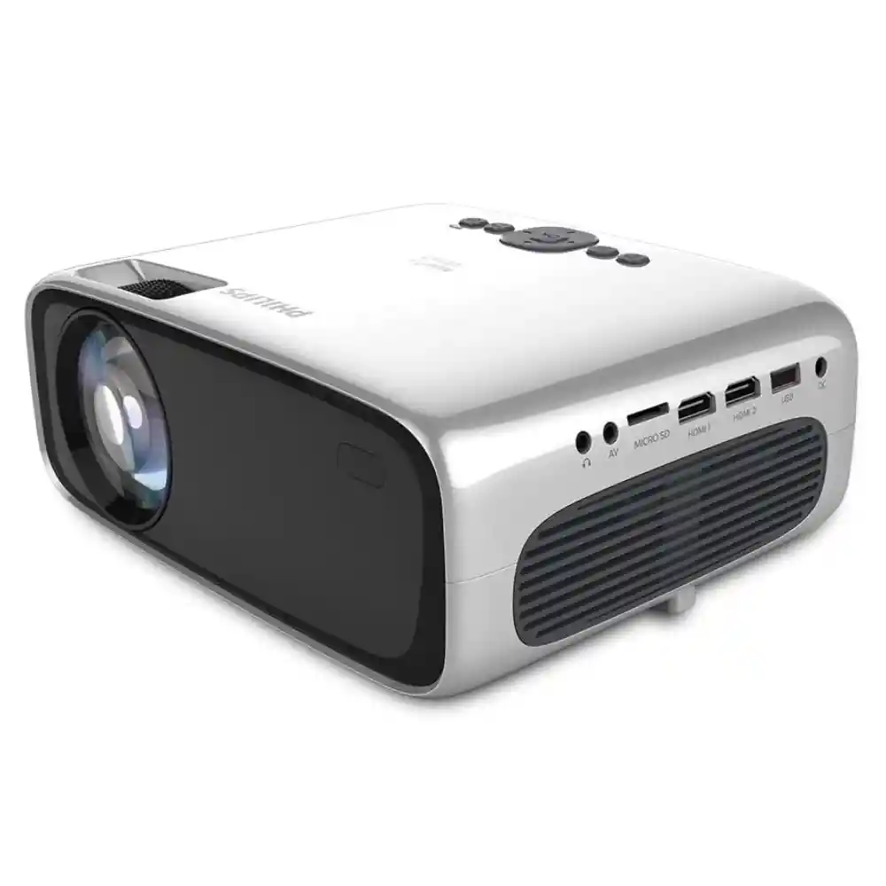 Philips NeoPix Prime 2, Proyector Inteligente con sistema Android Integrado True HD con efecto espejo de pantalla Wi-Fi, reproductor multimedia, conexión de altavoces Bluetooth, HDMI. El proyector NeoPix Prime 2 engrandece cada una de sus experiencias de visualización gracias a su resolución de 720p, las conexiones inalámbricas y sistema Android integrado. Transmita sus contenidos desde cualquier dispositivo inteligente mediante una red wifi, empareje altavoces externos mediante la conexión Bluetooth con miras a obtener un sonido más potente o simplemente conecte su consola de videojuegos mediante el puerto HDMI. El proyector NeoPix Prime 2 brinda todas las conexiones necesarias para experimentar una imagen supergrande prácticamente sobre cualquier pared. Los altavoces estéreo le garantizan disponer de audio dondequiera que esté y, además, puede conectar sus altavoces externos mediante el conector de audio de 3,5 mm para disfrutar de un sonido más potente. NeoPix Prime 2 incluye un mando a distancia para que navegue, reproduzca sus vídeos y escuche sus canciones favoritas sentado cómodamente en su sofá. Fuente de luz led avanzada La potente fuente de luz LED - con una vida útil de hasta 30 000 horas - genera colores ricos y vivaces. Con un uso promedio de 4 horas al día, ¡estará en buenas condiciones de funcionamiento durante hasta 20 años! Además, el consumo de energía es mucho más bajo que el de un proyector con una bombilla corriente, lo que significa que puede beneficiarse de una pantalla más grande, así como de una experiencia totalmente inmersiva, ¡todo ello con un dispositivo respetuoso de medioambiente! True HD (720p) El proyector NeoPix Prime 2 ofrece una resolución True HD (720p) para que vea todas sus películas y programas de TV favoritos, o se divierta con sus videojuegos predilectos en una proyección de 80in. El motor de tiro corto posibilita la reducción de la distancia de proyección para obtener una imagen incluso más grande a tan solo 2 metros de separación de la pared. ¿Tiene en mente un montaje en techo? No se preocupe, el proyector Prime 2 cuenta con un tornillo-trípode para instalarlo en cualquier lugar según sus necesidades. Además, puede conectar el proyector NeoPix a su Nintendo Switch, PlayStation 5 o cualquier consola para disfrutar de la acción de los videojuegos en una proyección de 80 in gracias a la baja latencia de entrada de 5 ms y una frecuencia de actualización de 60 Hz. Clonación inalámbrica de pantalla Transmita inalámbricamente sus contenidos como películas y vídeos, así como sitios web o vídeos de YouTube gracias a la función de clonación de pantalla mediante una red wifi desde cualquier dispositivo iOS, Android, Windows o MacOS. ¿Desea compartir sus imágenes o recrearse con sus juegos favoritos en una gran pantalla? Tan solo conecte su teléfono inteligente (en cuestión de segundos) mediante una red wifi. Marca: Philips Modelo: NeoPix Prime 2 (App android) Tecnología de visualización: LCD Fuente de luz: LED Relación de contraste: 3000:1 Resolución: 1280 x 720 píxeles Índice de alcance: 1,4:1 Relación de aspecto: 16:9 Enfoque ajustable: Manual Corrección trapezoidal: Digital Vida útil de los LED: Hasta 30.000h Tamaño de imagen de proyección: hasta 80" (200 cm) Distancia de proyección: 80 cm - 200 cm / 24" - 60" Resolución compatible: 1920 x 1080 píxeles Wi-Fi: Duplicación de pantalla inalámbrica Bluetooth: Conexión de altavoz externo Lo que obtienes con tu compra: 1 x Proyector 1 x Cable de poder 1 x Control Remoto 1 x Cable HDMI 1 x Manual de usuario