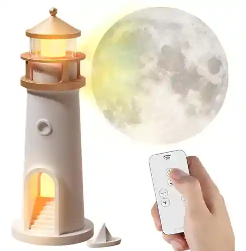 Faro Luna – Luz mágica para tus espacios El Faro Luna combina diseño elegante y luz ambiental para crear un ambiente cálido y relajante. Su forma inspirada en la luna llena ilumina con un brillo suave que transforma cualquier rincón y le da un toque mágico. Perfecto para habitaciones, salas, eventos, decoración nocturna o como regalo especial. Es ligero, fácil de ubicar y agrega un estilo moderno y encantador a tu hogar. Ideal para: habitaciones, eventos, decoración romántica, regalos y espacios acogedores.