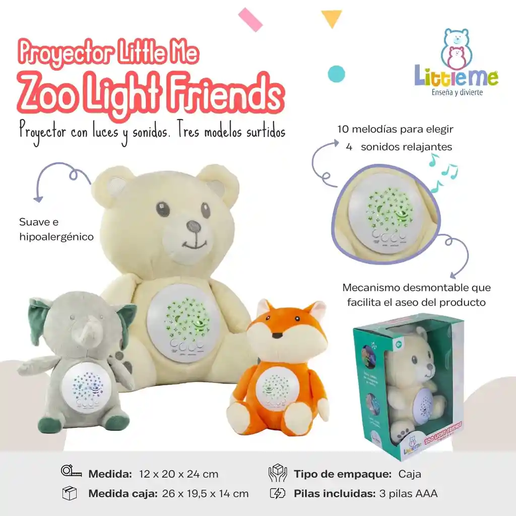 "Osito Proyector de estrellas (7 colores), con melodias y sonidos. 10 melodías para elegir 4 sonidos blancos. Botón para graduar el volúmen Apagado automático Suave e hipoalergénico. Mecanismo desmontable que facilita el aseo del producto. Tres modelos surtidos"