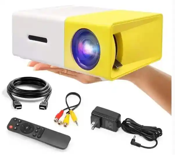 PROYECTOR Su diseño portátil y versátil lo convierte en una excelente opción para crear una experiencia de cine en casa o disfrutar de películas y juegos en exteriores. DESCRIPCION El proyector portátil YG300 es un dispositivo compacto y ligero, ideal para disfrutar de contenido multimedia en cualquier lugar. Con una resolución nativa de 320 x 240 píxeles y soporte para hasta 1080p, ofrece una experiencia visual adecuada para su tamaño. Su brillo de 400 a 600 lúmenes y relación de contraste de 800:1 permiten proyectar imágenes de 24 a 60 pulgadas en entornos oscuros. Equipado con múltiples opciones de conectividad, como HDMI, USB, AV y ranura para tarjeta microSD, es compatible con diversos dispositivos, incluyendo consolas y reproductores multimedia. Además, cuenta con altavoz integrado y salida de audio de 3.5 mm. Su fuente de luz LED tiene una vida útil de hasta 30,000 horas, y puede alimentarse mediante adaptador de corriente o power bank, lo que lo hace perfecto para uso en casa o actividades al aire libre. 10 características del producto: .1-Resolución nativa de 320 x 240 píxeles 2.-Soporte para resolución de hasta 1080p 3.-Brillo de 400 a 600 lúmenes 4.-5Relación de contraste de 800:1 5.-Tamaño de proyección de 24 a 60 pulgadas 6.-Conectividad HDMI, USB, AV y microSD 7.-Altavoz integrado y salida de audio de 3.5 mm 8.-Vida útil de la lámpara LED de 30,000 horas 9.-Alimentación por adaptador de corriente o power bank 10.-Dimensiones compactas: 12.64 x 8.50 x 4.70 cm QUE INCLUYE LA COMPRA x1 PROYECTOR