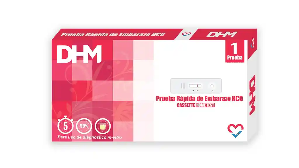 Prueba de Embarazo DHM · Resultado en 5 minutos · 99% de precisión Porque hay momentos que no admiten dudas. La Prueba de Embarazo DHM detecta la hormona hCG desde las primeras semanas con una precisión del 99%. Simple, rápida y confiable: solo adiciona unas gotas de orina, espera 5 minutos y lee el resultado. Sin complicaciones. Sin esperas innecesarias. Con el respaldo del registro INVIMA y tecnología de diagnóstico in vitro de nivel clínico, directo a tu puerta. ✓ Resultado en 5 min · ✓ 99% precisión · ✓ Registro INVIMA · ✓ Fácil uso en casa