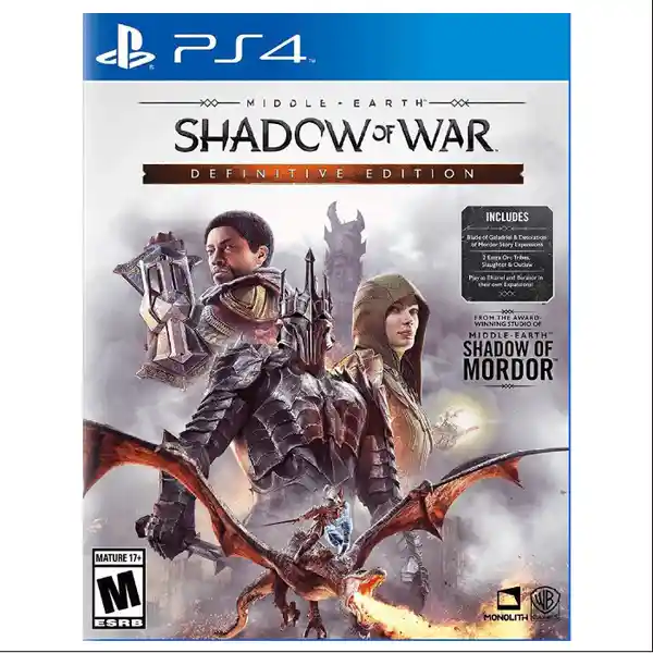 Shadow Of War Definitive Edition - Playstation 4 Desarrolladores: Monolith Productions, Iugo Modos: Videojuego de un Jugador, Videojuego Multijugador Géneros: Videojuego de Rol de Acción, Videojuego de Acción-Aventura, Hack And Slash Plataforma: Playstation 4 Experimenta un Mundo Abierto Épico Que Cobra Vida Gracias al Galardonado Sistema Nemesis. Forja un Nuevo Anillo de Poder, Conquista Fortalezas en Batallas Masivas y Domina a Mordor Con tu Ejército Personal de Orcos en la Edición Definitiva de Middle-Earth ™: Shadow Of War ™. la Edición Definitiva Incluye Todo el Contenido Descargable: • Desolación de Mordor Story Expansion • Blade Of Galadriel Story Expansion • Slaughter Tribe Nemesis Expansion • Outlaw Tribe Nemesis Expansion Nemesis Expansions Incluye Una Nueva Tribu Orc Con Nuevas Misiones, Enemigos, Seguidores, Habilidades, Armas, Fortaleza y Actualizaciones de Desierto, y un Conjunto de Equipo Legendario. Las Expansiones de Historia Introducen un Nuevo Personaje Jugable y Habilidades, Campañas de Historia, Misiones Secundarias, Enemigos, Aliados y Más.